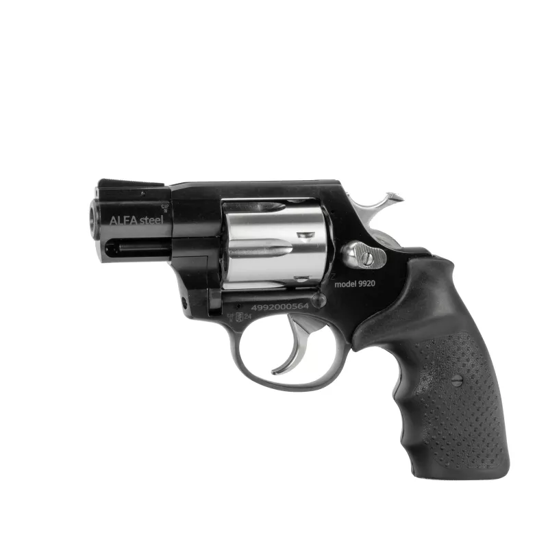 Všechny vlastnosti a možnosti náboje 9 mm Flobert jsou zde poprvé vloženy do revolveru, který je kvalitou konstrukce, kvalitou zpracování a materiálů na stejné úrovni, jako profesionální služební, obranné a sportovní revolvery ALFA STEEL. Samozřejmostí je, že všechny, hlavní i malé díly zbraně jsou vyrobeny z ušlechtilé uhlíkaté oceli a s pečlivou povrchovou úpravou - hluboké černění.